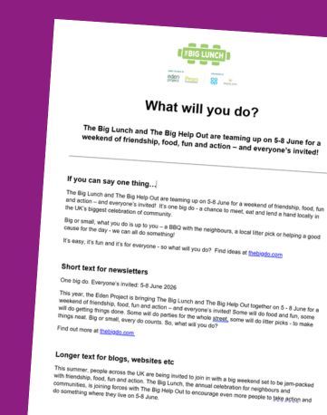 If you’d like to inspire more people to take part and enjoy the benefits of The Big Lunch, we’ve got ready-to-use copy, graphics, images, and logos to make that easy. Thank you for helping make this year’s Big Lunch bigger than ever!